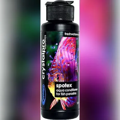 Crystalpro Spotex 125 ml beyaz benek önleyici, tatlı ve tuzlu su balıklarında beyaz benek ve dış parazitlere karşı etkili, güvenli bir akvaryum su düzenleyicisidir.
