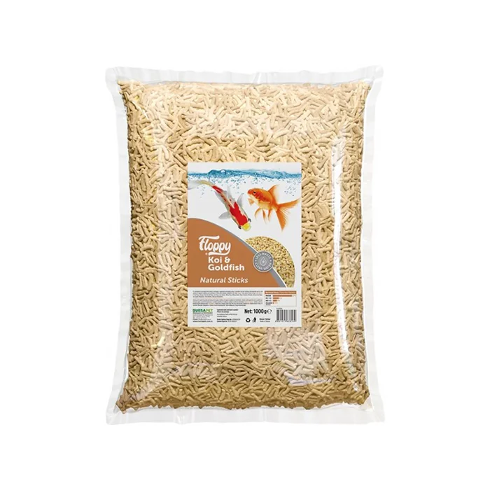 FLOPPY Koi Goldfish Yem 1 kg, koi ve japon balıkları için dengeli protein–yağ oranı, vitamin ve mineral desteğiyle sağlıklı büyüme ve canlı renkler sunar.