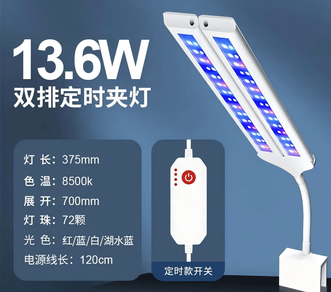 Çift kanatlı kelebek tasarımı ve ayarlanabilir gövde yapısı sayesinde akvaryumlarda geniş ve dengeli bir ışık dağılımı sunar. 13,6 watt gücü ile enerji verimli bir performans sağlarken, bitkilerin ve canlıların doğal renklerini ön plana çıkarır.