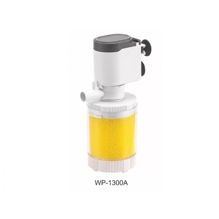 Sobo WP-1300A akvaryum iç filtre, 400 L/H debisi ve 5W düşük enerji tüketimiyle küçük ve orta akvaryumlarda sessiz ve etkili temizlik sağlar.